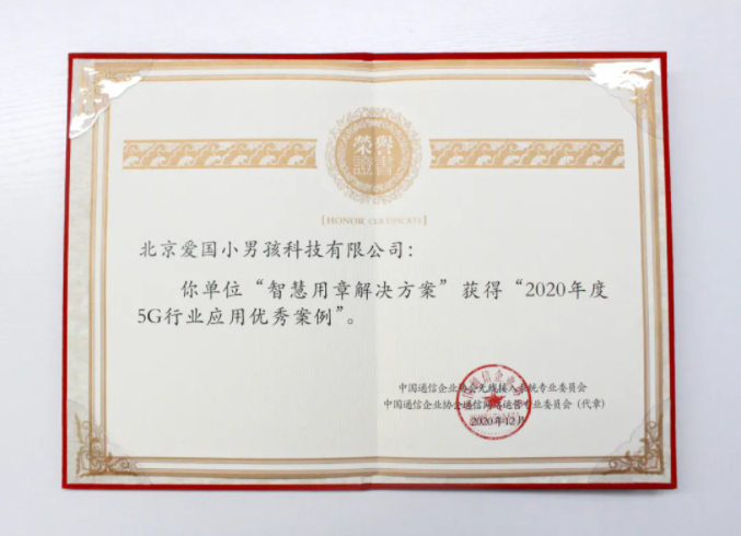 祝賀!愛國小男孩智慧用章解決方案榮獲“2020年度5G行業應用優秀案例”