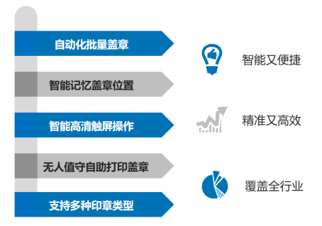 智能蓋章機基于自動化技術下的定制服務,實現了自動化批量蓋章、智能記憶蓋章位置、智能高清觸屏操作、無人值守自助打印蓋章等核心功能,提升企業用章效率,降低人工成本。