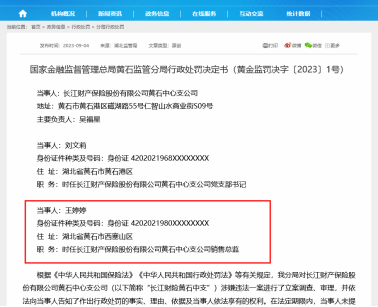9月4日,國家金融監(jiān)督管理總局官網(wǎng)發(fā)布信息,長江財產(chǎn)保險股份有限公司黃石中心支公司原銷售總監(jiān)王婷婷私刻公章、騙取客戶資金,被終身禁止進入保險業(yè)。