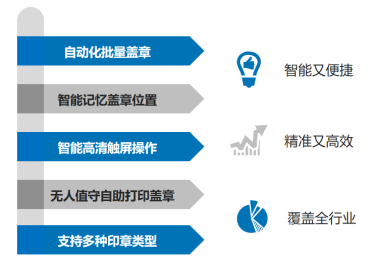 智能蓋章機作為賦能物流行業數字化轉型的重要一環,助力物流企業解決用章痛點,提高辦公效率,降低用章風險。它可以實現自動化批量蓋章、智能記憶蓋章位置、智能高清觸屏操作、無人值守自助打印蓋章等功能,可以提升物流單據的蓋章效率,減輕蓋章人員的壓力。