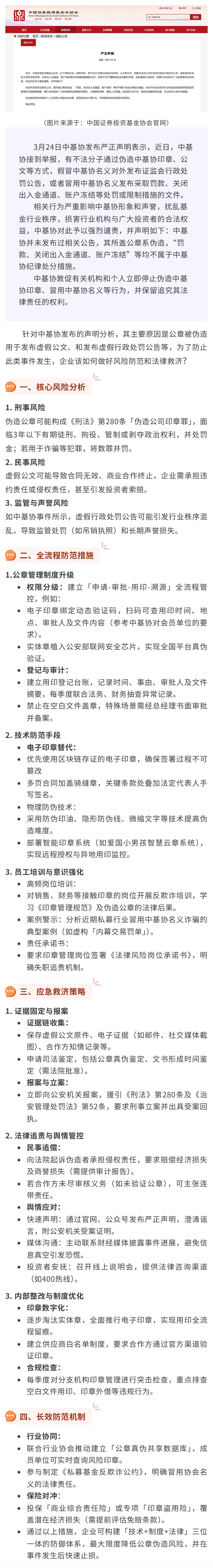 中基協聲明:未發布過證監會行政處罰公告,所蓋公章系偽造