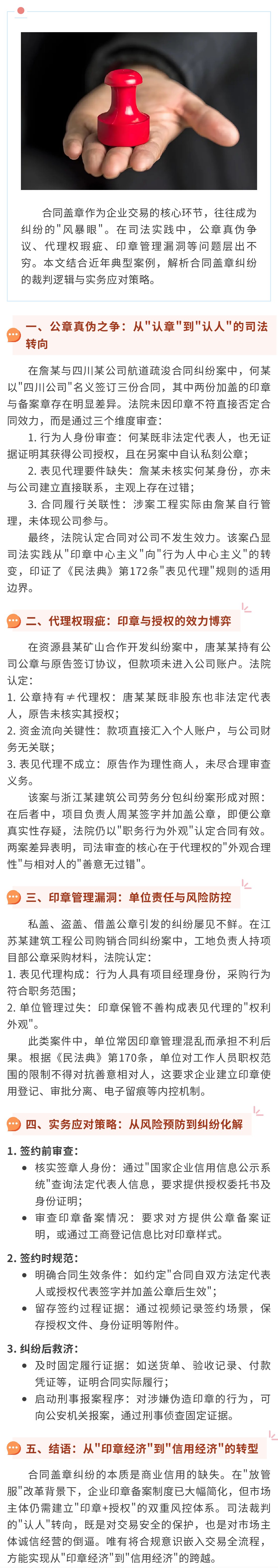《公章≠保險(xiǎn)栓:合同蓋章糾紛的司法裁判與防控之道》