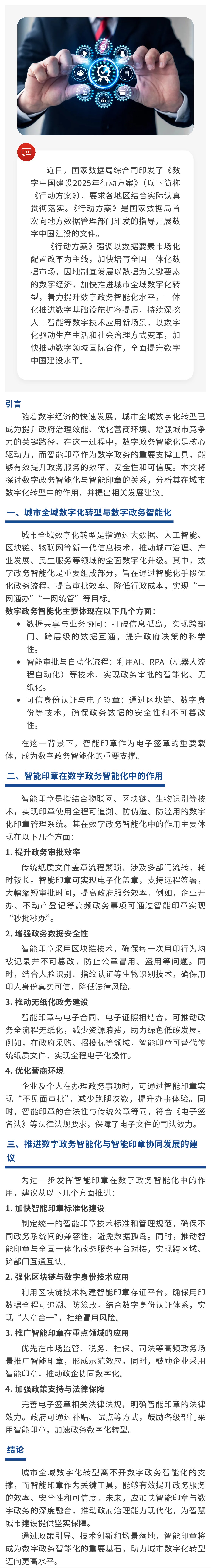加快推進(jìn)城市全域數(shù)字化轉(zhuǎn)型: 數(shù)字政務(wù)智能化與智能印章的協(xié)同發(fā)展